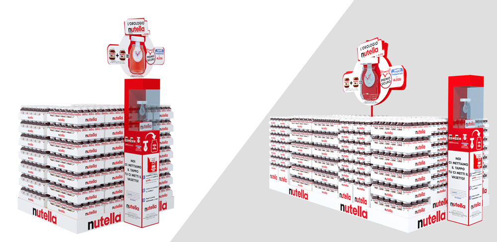 La sfida è stata comunicare che il classico vasetto Nutella poteva trasformarsi in un oggetto differente, semplicemente sostituendo il tappo con il meccanismo di un orologio. Attraverso la grafica, il copy e i materiali espositivi abbiamo illustrato la meccanica promozionale e spiegato il premio nel modo più diretto e chiaro possibile.